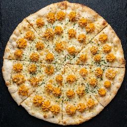 Nous proposons également une pâte SANS GLUTEN* (uniquement en taille 30cm-M) et la possibilité MAKE IT VEGAN en remplaçant le fromage végétalien par n'importe quelle pizza à la mozzarella et à la mozzarella râpée (et en supprimant les autres fromages). Ces options se trouvent dans la section « Suppléments » après avoir choisi votre pizza.